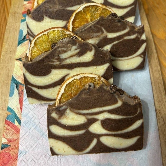 - Мыло-скраб кофейно-шоколадное полосатое